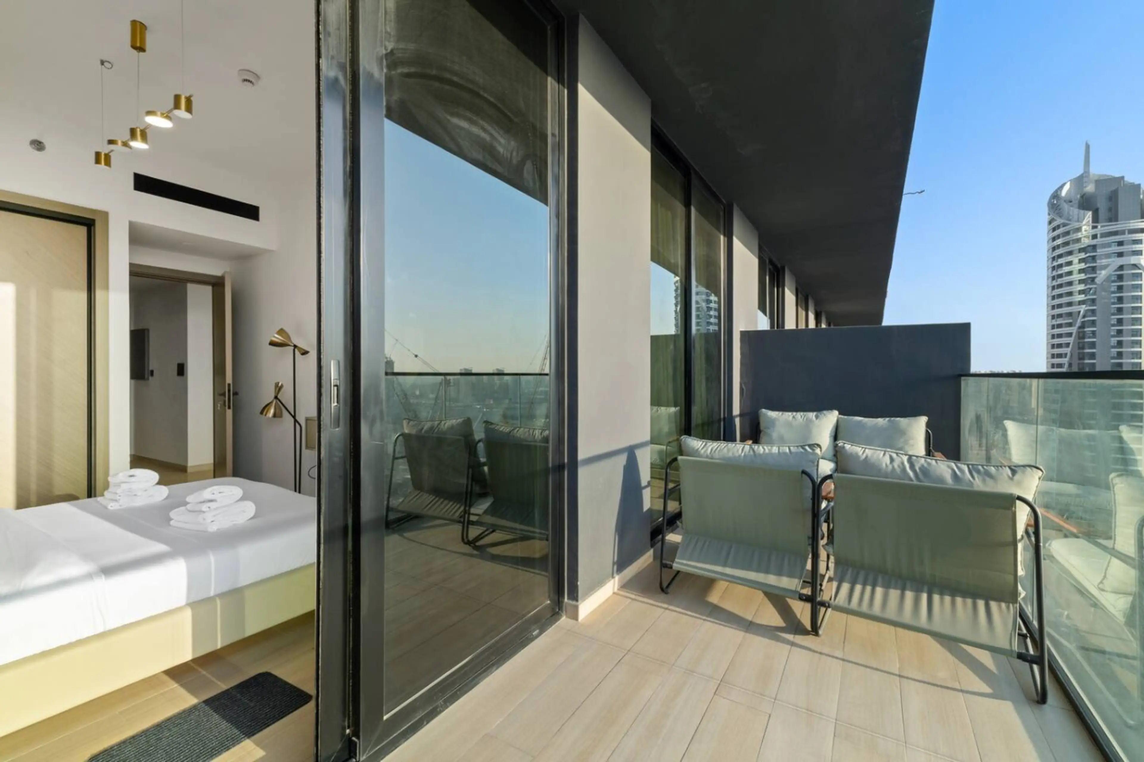• 1 camera da letto con arredi curati e letto matrimoniale di alta qualità • Capienza: 4 persone • Cucina completa • Soggiorno accogliente con Smart TV e accesso al balcone • Aria condizionata in tutti gli ambienti • Balcone privato per momenti di relax all’aperto • Palestra attrezzata all’i...